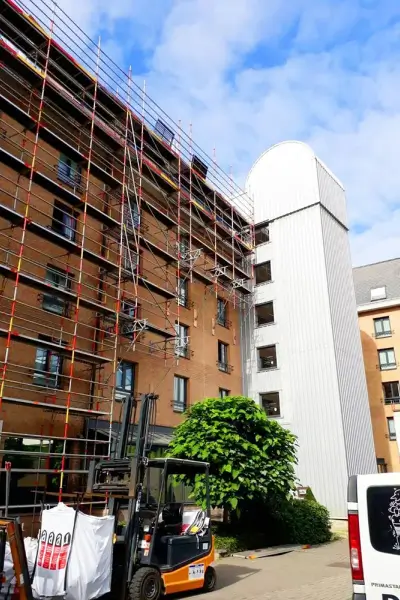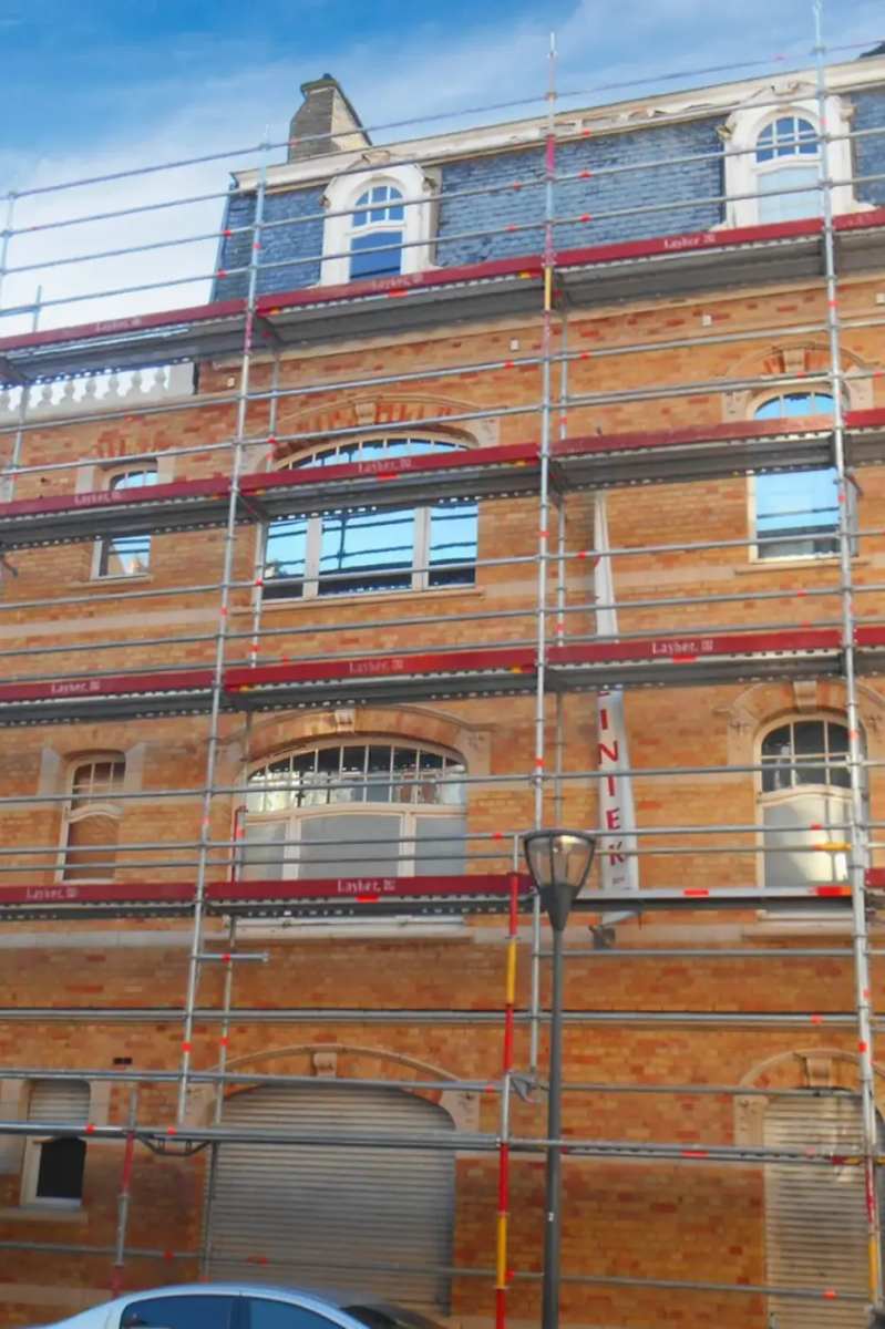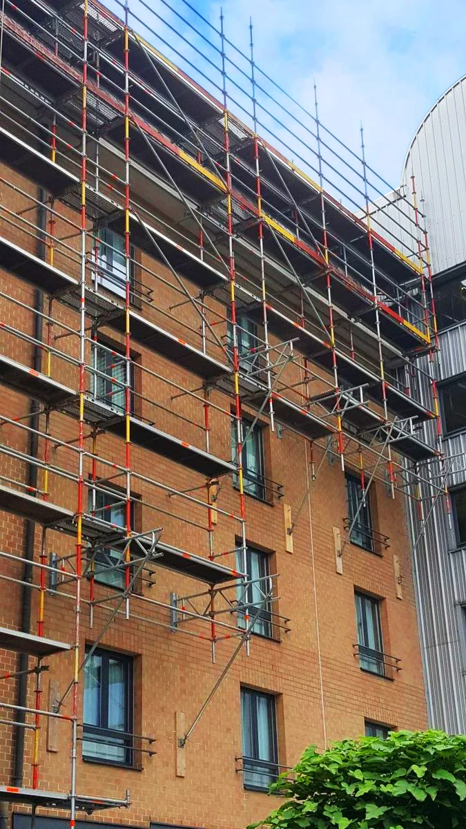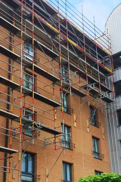 Échafaudage extérieur : travail en hauteur en toute sécurité.